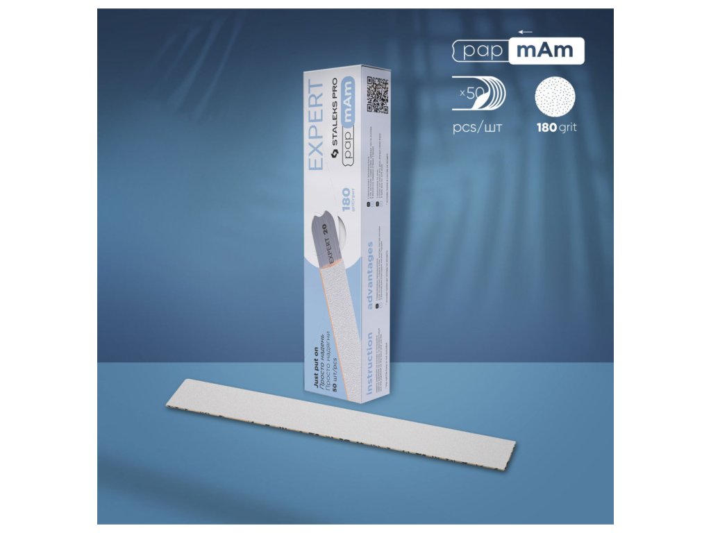 V rade Pap mAm sú výmenné puzdre prezentované v najžiadanejších možnostiach abrazivity a poskytujú širokú škálu aplikácií. Na opravu prírodných nechtov použite pilník s vysokou abrazivitou (zrnitosť 240) as väčším zrnom (zrnitosť 180/100) sú vhodné pre predĺžené gélové alebo akrylové nechty. Po dokončení práce je možné brúsne papiere ľahko odstrániť bez toho, aby na kovovom povrchu pilníka zostane lepidlo, čo zaisťuje ešte väčšiu trvanlivosť.